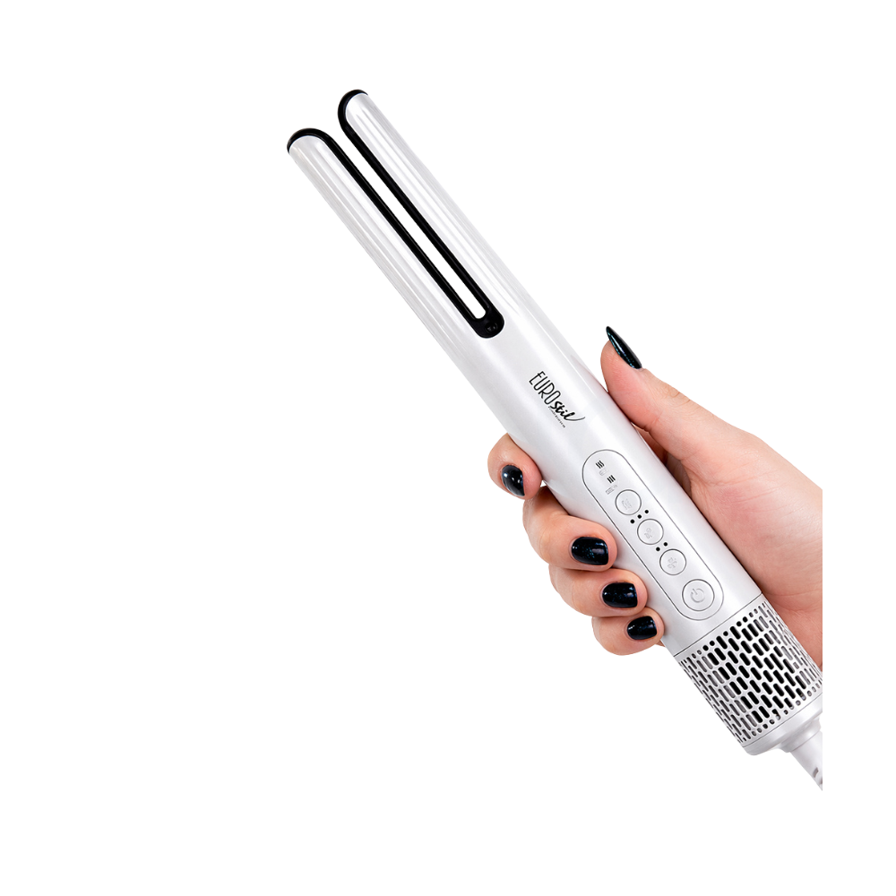 Eurostil Aura je moderný fén na rovnanie vlasov, ktorý kombinuje sušenie a vyrovnávanie vlasov v jednom kroku. Vďaka inovatívnej technológii prúdenia vzduchu dokáže vytvoriť hladký a lesklý účes bez potreby klasickej žehličky na vlasy.